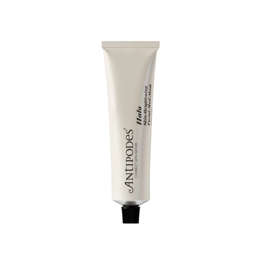 Een zeer effectief ontgiftend masker voor een stralende teint. Verwen je huid met mineraalrijke vulkanische modder uit geothermische Nieuw-Zeeland, die de huid doordrenkt met verhelderende extracten en een onmiddellijke glans. Het antioxidant Vinanza® druiven- en kiwi-extract zorgt samen met de waardevolle pioenroos voor meer uitstraling, terwijl de geur van vanille, framboos en musk verkwikt en stimuleert. Het Antipodes® Halo Skin-Brightening Facial Mud Mask overtuigt met huidverlichtend en huid- verstevigende eigenschappen.Detox je huid met mineraalrijke vulkanische modder.Jojoba-kralen verlichten en herstellen de glans van een doffe huid.Vinanza® Grape & Kiwi helpt de huid te verhelderen en pigmentvlekken te verminderen.Gecertificeerde veganistische huidverzorging, geschikt voor de meeste huidtypes, vooral ook voor de huid tegen onzuiverheden Volgens klinische studies helpt Vinanza® Grape & Kiwi de teint te verbeteren*. *Onafhankelijke studie uitgevoerd door New Zealand Extracts (2012): De 8 weken durende klinische studie met 10 vrouwen toonde aan dat Vinanza® Grape & Kiwi de teint helpt verbeteren. Klinische studies hebben aangetoond dat het extract de membraanintegriteit van de