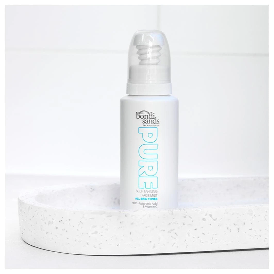 Bondi Sands Pure Self Tanning Face Mist combineert een iconische goudbruine teint met huidvriendelijk hyaluronzuur voor hydratatie, vitamine C voor glans en vitamine E voor herstel. De kleurloze, parfumvrije formule is etherisch en verfrissend voor een onmiddellijke uitbarsting van hydratatie. Geschikt voor alle huidtinten.