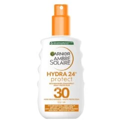 – Verzorg en bescherm je huid tegelijkertijd met de Garnier Ambre Solaire Hydraterende Zonnebrandspray SPF 30. Deze zonnebrand beschermt de huid tegen de zon en voorkomt uitdroging.