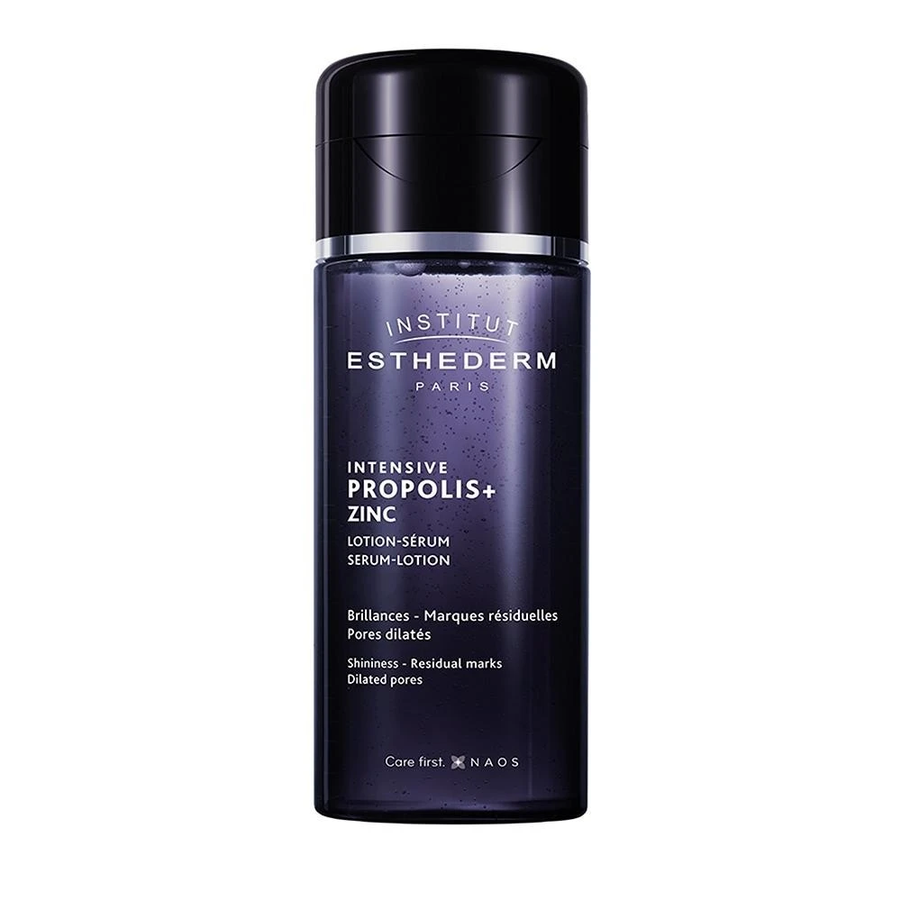 Deze serum-lotion helpt bij het verminderen van fijne rimpels veroorzaakt door onregelmatigheden, matteert de huid en verkleint de poriën zichtbaar. Propolis staat bekend om zijn zuiverende en kalmerende eigenschappen. Intensive Propolis + Zinc Serum-Lotion kalmeert en helpt het ongemak dat gepaard gaat met onregelmatigheden te verminderen. Voor een stralende en egale teint vermindert het zichtbaar onregelmatigheden. Dankzij het zinkgluconaat ingrediënt, matteert en verfijnt de liche en verfrissende textuur de huidtextuur door glanzende delen te verminderen en de poriën zichtbaar te verkleinen.