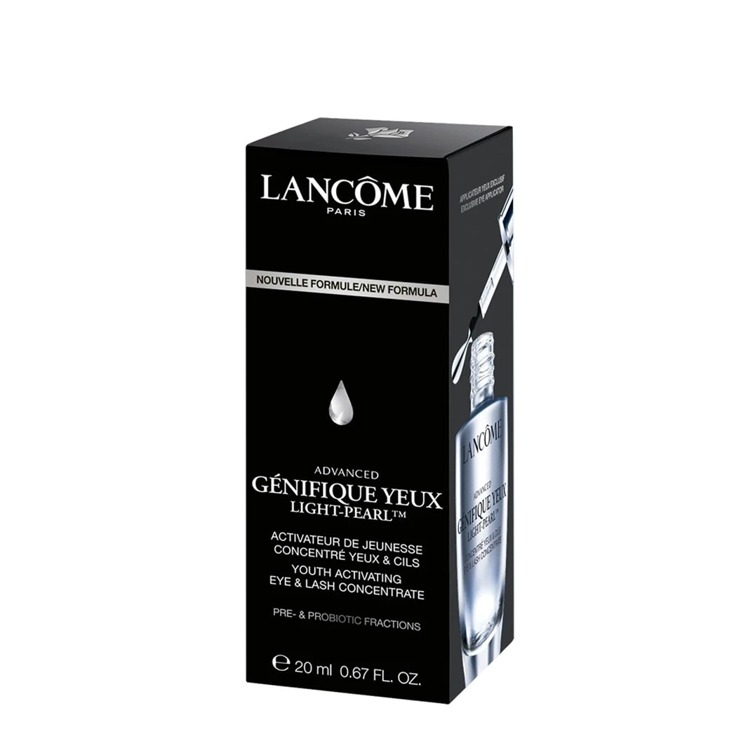 Advanced Génifique Yeux Light-Pearl oogserum van Lancôme- Eigenschap: voedend, verkoelend, verjongend- Huidtype: alle huidtypes- Effect/resultaat: gladder en strakker oogcontour, versterkte wimpers- Consistentie: serum- Toepassingsgebied: oog zone- Producttype: oog- en wimperserum- Tolerantie: Geschikt voor alle huidtypes, inclusief de gevoelige huid Ingrediënten: pre- en probiotische extracten, cafeïne, arginine Aanbevolen productroutine: Advanced Génifique Serum, Génifique New Eye Cream, Hypnose MascaraAdvanced Génifique Yeux Light -Pearl is een oog- en wimperserum van Lancome. Deze 360° verzorging heeft een verjongend effect en vermindert gezwollen ogen, kraaienpootjes, wallen onder de ogen, hangende bovenoogleden en rimpels rond de ogen. Naast het verstrakkende effect versterkt het oogserum het gevoelige gebied rond de ogen en wimpers. Een ander belangrijk ingrediënt in oogverzorging is cafeïne. Dit werkt tegen gezwollen ogen, terwijl de arginine die het bevat zorgt voor mooie wimpers.Met behulp van de flexibele en gepatenteerde 360° applicator worden alle delen van het oog bedekt tijdens het aanbrengen en maakt ook een verfrissende cryo-massage mogelijk.De Génifique Yeux Light- Pareloogserum:• Versterkt de beschermende barrière van de huid•Verfrist en verstevigt•Bevat rijke ingrediënten