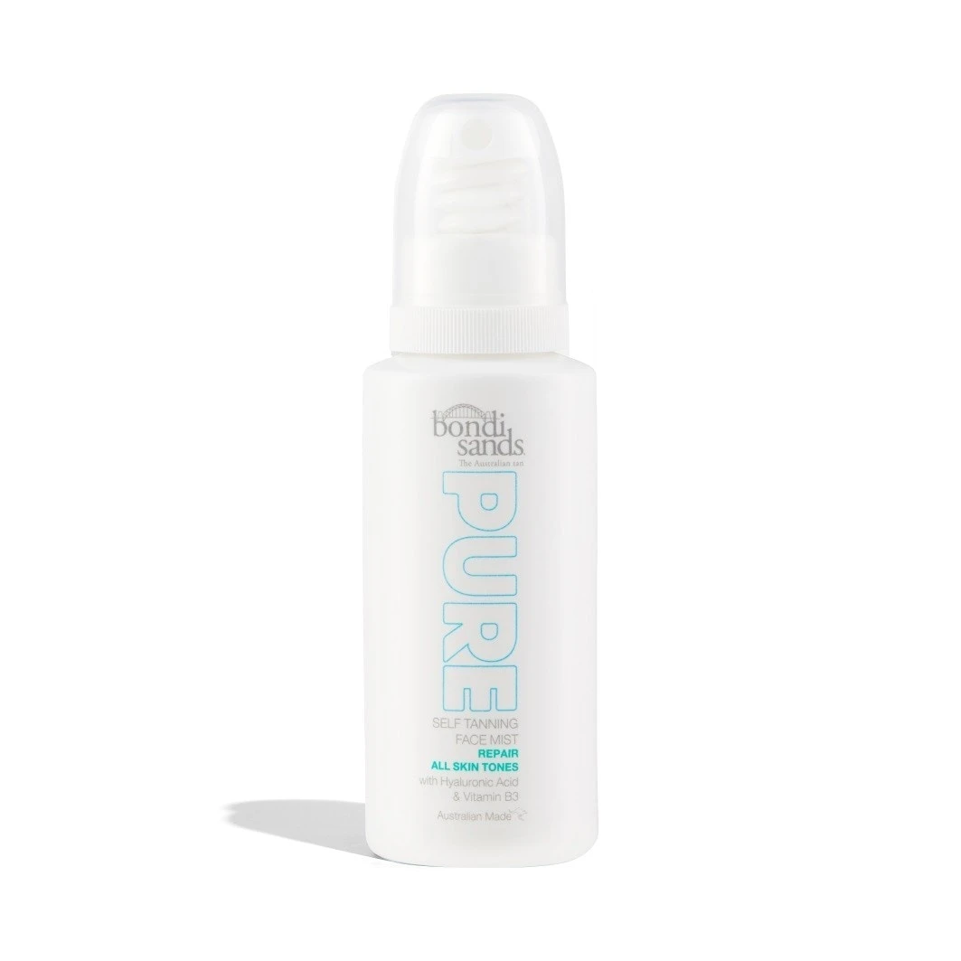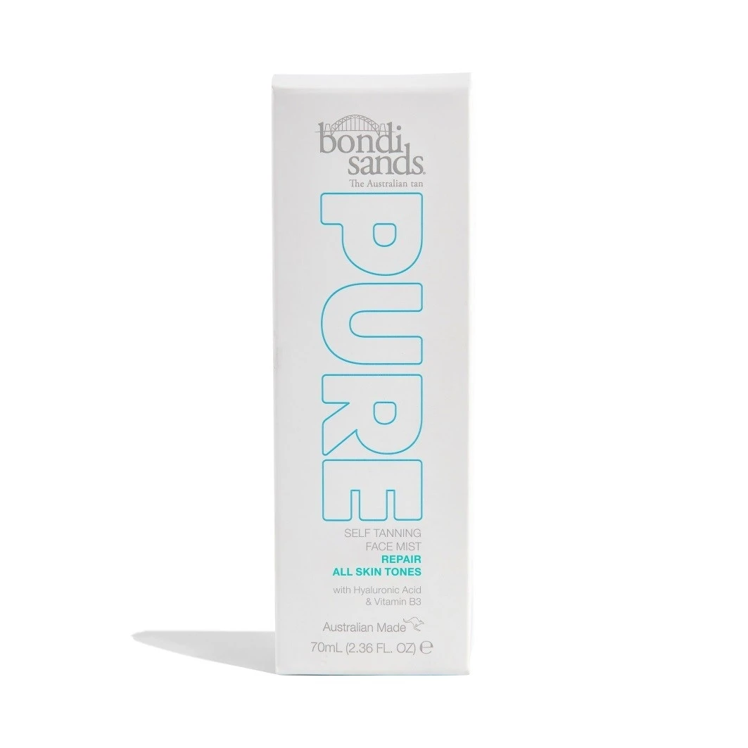 Bondi Sands Pure Self Tanning Face Mist Repair combineert een iconische goudbruine teint met huidverzorgende ingrediënten en vitamine B3 (niacinamide) om te helpen bij een ongelijkmatige teint.