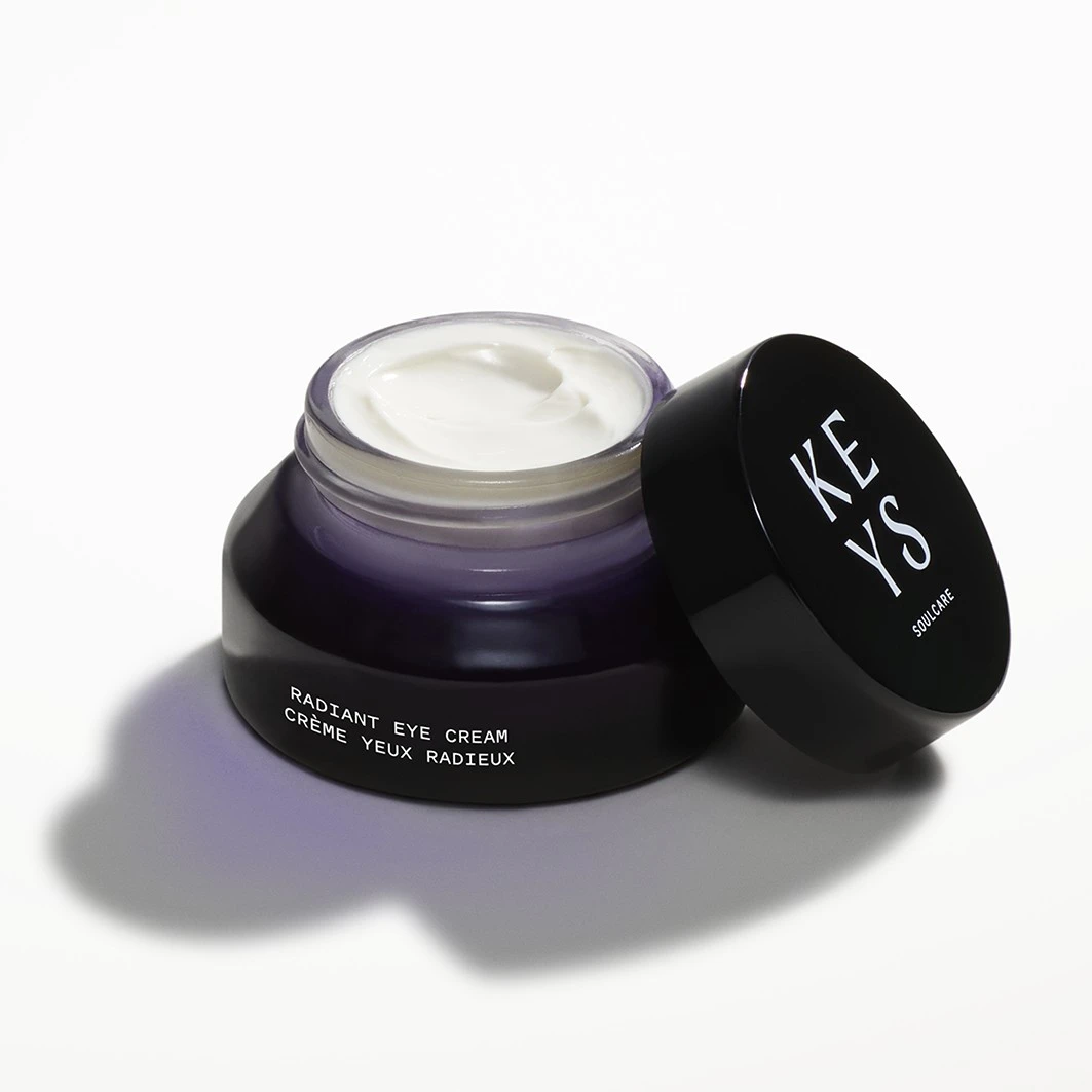 Keys Soulcare’s Radiant Eye Cream, ontwikkeld in samenwerking met een specialist in dermatologie, opent de ogen, stimuleert de geest en herstelt de natuurlijke uitstraling van de huid rond de ogen. De hydraterende formule op basis van peptiden, zonnebloemolie en bladgoud bindt optimaal vocht in de huid en verbetert de zichtbaarheid van fijne rimpels die terug te voeren zijn op een droge huid. Krachtige peptiden zijn de basisbouwstenen van eiwitten zoals collageen, elastine en keratine en ondersteunen zo de natuurlijke regeneratie van het ooggebied, voorzien het van waardevol vocht en geven het vitaliserende verzorging. De voedingsrijke olie uit zonnebloempitten voorziet de gevoelige huid van effectieve antioxidanten en essentiële vetzuren, terwijl bladgoud de natuurlijke balans van de huid onder de ogen herstelt en laat stralen. Het resultaat is een alerte look met een stralende en ontspannen teint.