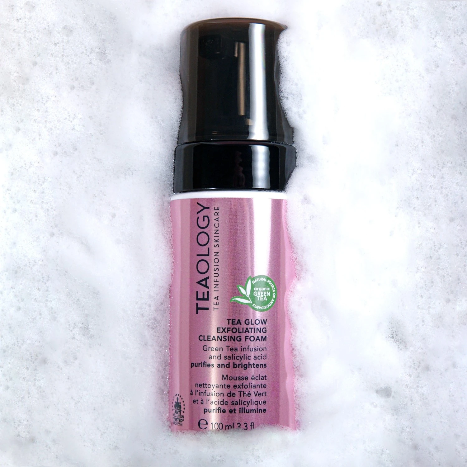 De tea glow foam is een exfoliërende Reinigende Mousse met Groene Thee infusie en Salicylzuur.